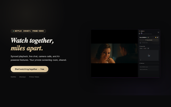 WatchNest é uma extensão de navegador que transforma o ato de assistir filmes e séries em um evento social interativo. Com suporte para plataformas como Netflix, Disney+ e Amazon Prime Video, permite que amigos ou casais assistam juntos, mesmo à distância. A sincronização de reprodução garante que todos vejam o mesmo conteúdo ao mesmo tempo, eliminando a frustração de atrasos e pausas indesejadas.